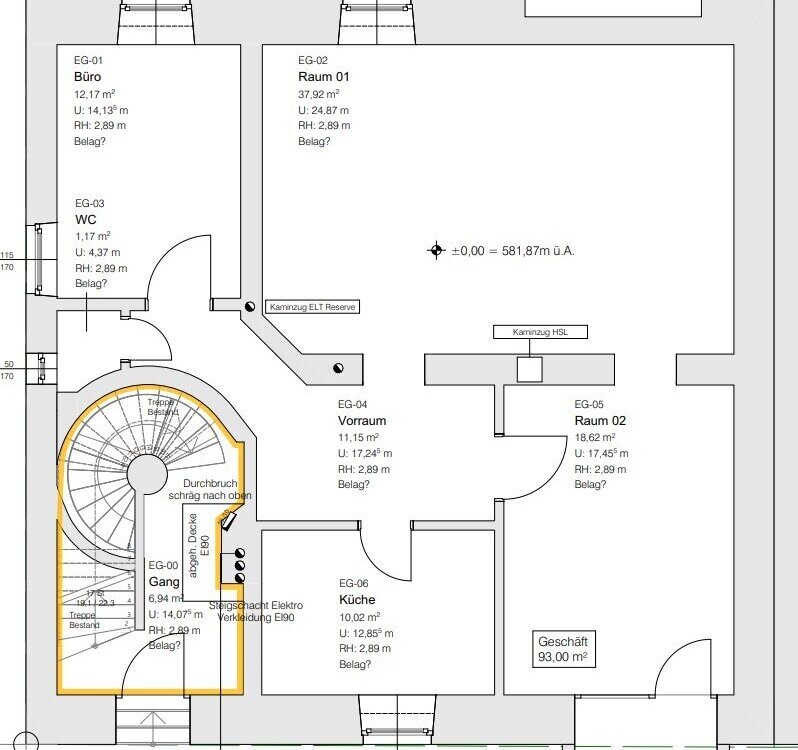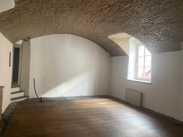 Die Gewerbefläche besticht durch die Kombination alt (wunderschönes Gewölbe im größeren und 2,89 m hohen Raum), sowie durch eine moderne, groß verglaste Fläche in Richtung Heiliggeiststraße! Die Grundrisse der ca. 93 m² großen Räumlichkeiten sind teils noch flexibel. Zur großen südlichen Gewölbefläche mit ca. 38 m² Fläche, kommen ein verglaster Entrée-Bereich mit ca. 18 m², sowie 2 Büros (ca. 10 und 12 m²), ein Durchgangsbereich mit ca. 11 m² und ein WC hinzu.