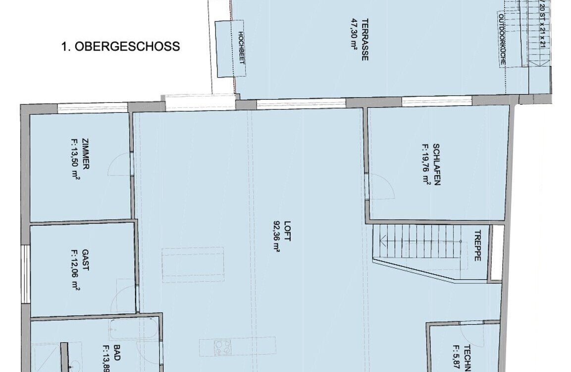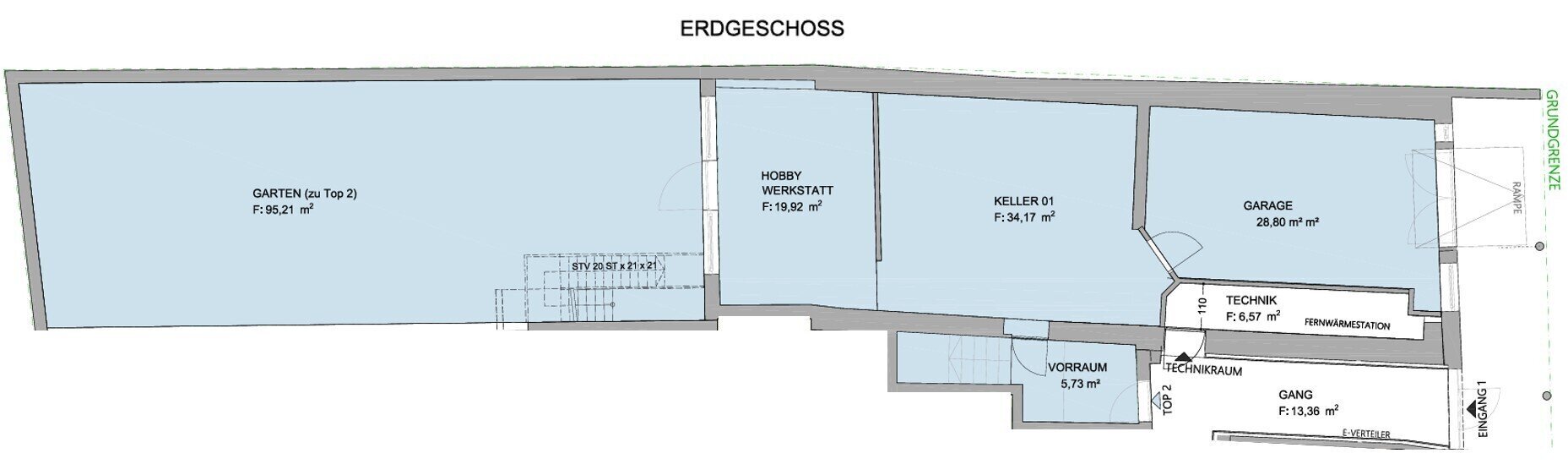 Die Fläche im Erdgeschoß beträgt nochmal ca. 82,89 m² und kann beliebig gestaltet werden, sei es als Wohnraum, Büro, Werkstatt, etc.