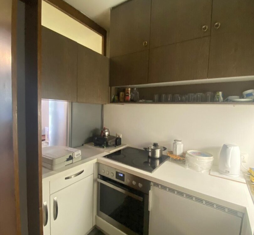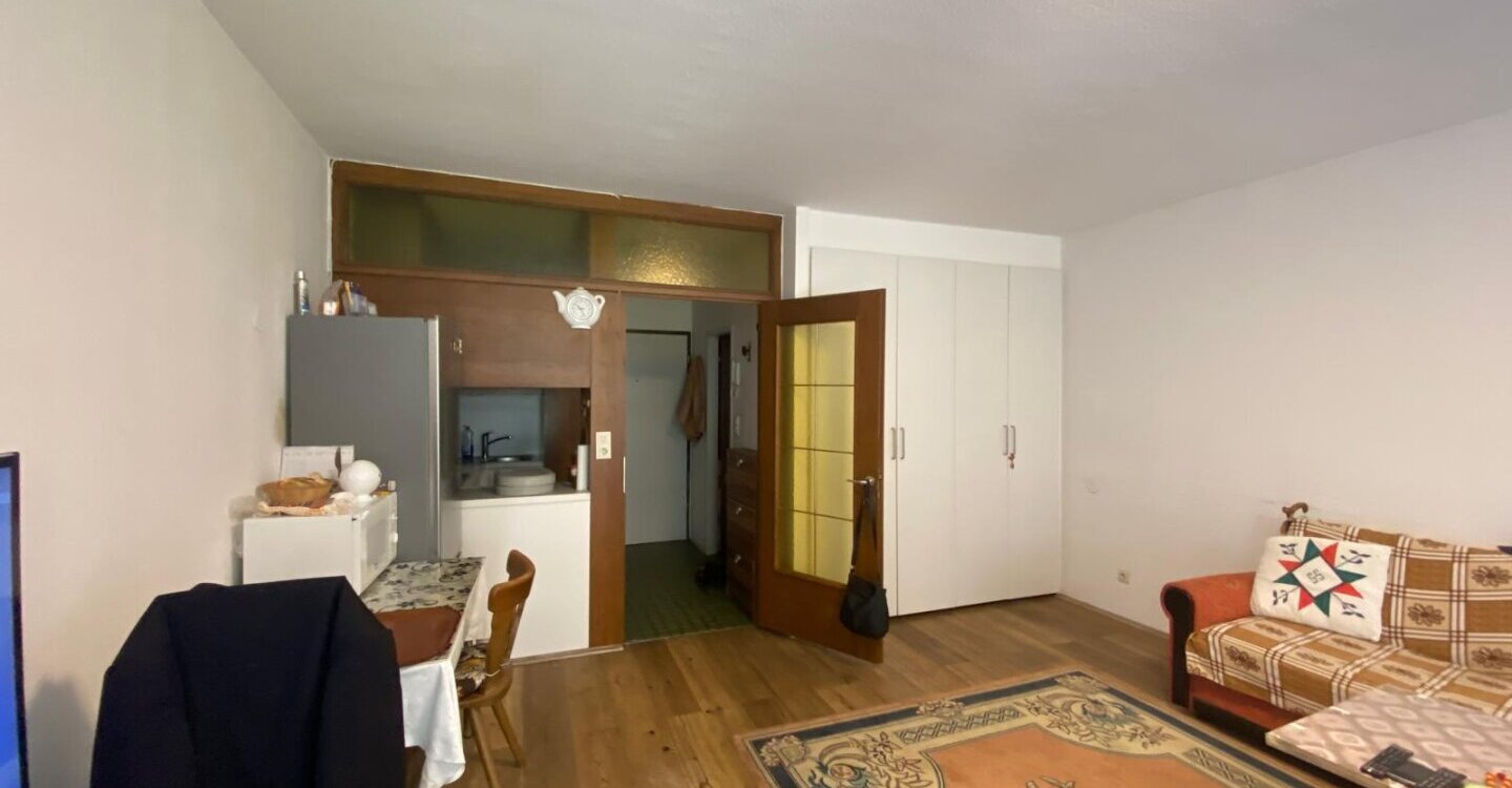 Die Wohnung ist renovierungsbedürftig, was Ihnen die Chance gibt, Ihr persönliches Design und Ihren Stil einfließen zu lassen. Gestalten Sie Ihre Räume ganz nach Ihren Vorstellungen – sei es ein modernes, minimalistisches Design oder eine gemütliche Atmosphäre. Ein weiterer Pluspunkt, der große ostseitige Balkon mit Blick auf die Berge und die Grünflächen der Stadt.