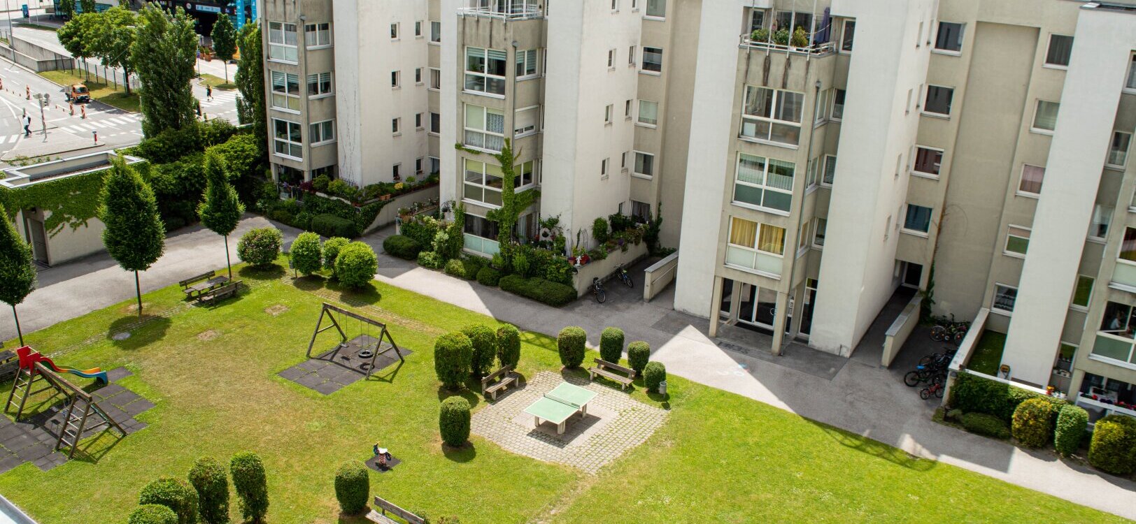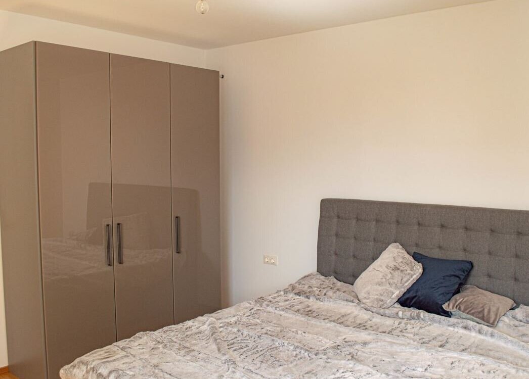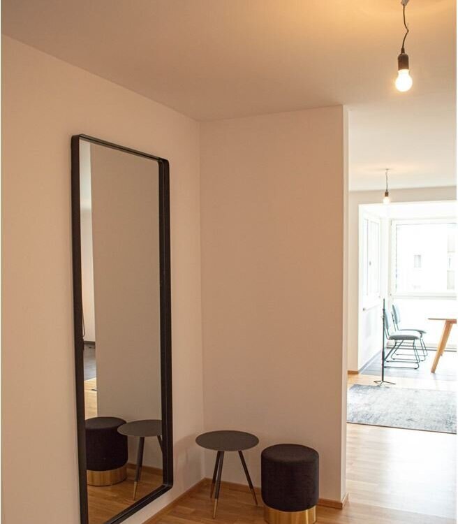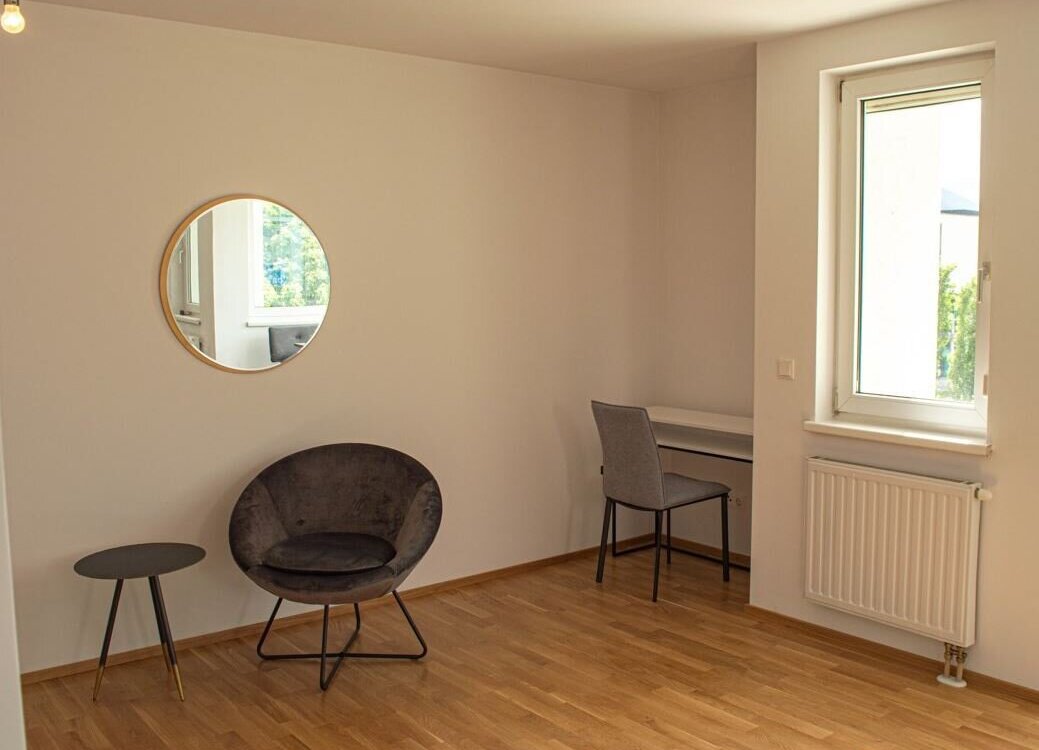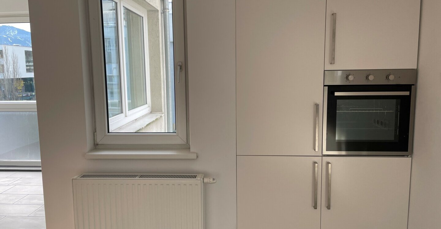 Die sonnige und sehr großzügige 4-Zimmerwohnung ist vorwiegend nach Westen ausgerichtet und wurde sehr geschmackvoll renoviert. Die ca. 86 m² große Wohnung ist unterteilt in 3 Schlafzimmer, einen großzügigen Vorraum, einen Abstellraum, ein Gäste-WC, ein Badezimmer mit Fenster und großer, bodengleicher Duschkabine. Die helle und sehr gemütliche Wohnküche ist mit einem eleganten Eichenparkett und einer modernen Küchenzeile (große Gefrier-/Kühlkombi und Geschirrspüler inklusive) ausgestattet. Vom westseitig ausgerichteten Wohnzimmer gelangt man barrierefrei in die verglaste, sonnige Loggia, mit Blick auf die Berge und ins Grüne.
