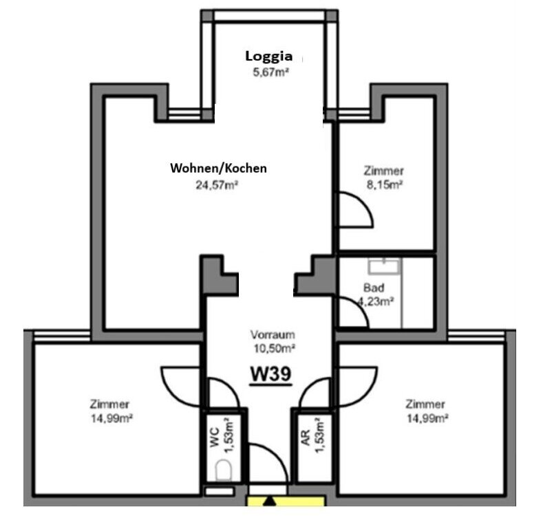 Achtung Planskizze: der rechte Raum, angrenzend an die Küche, befindet sich in Natura auf der linken Seite!