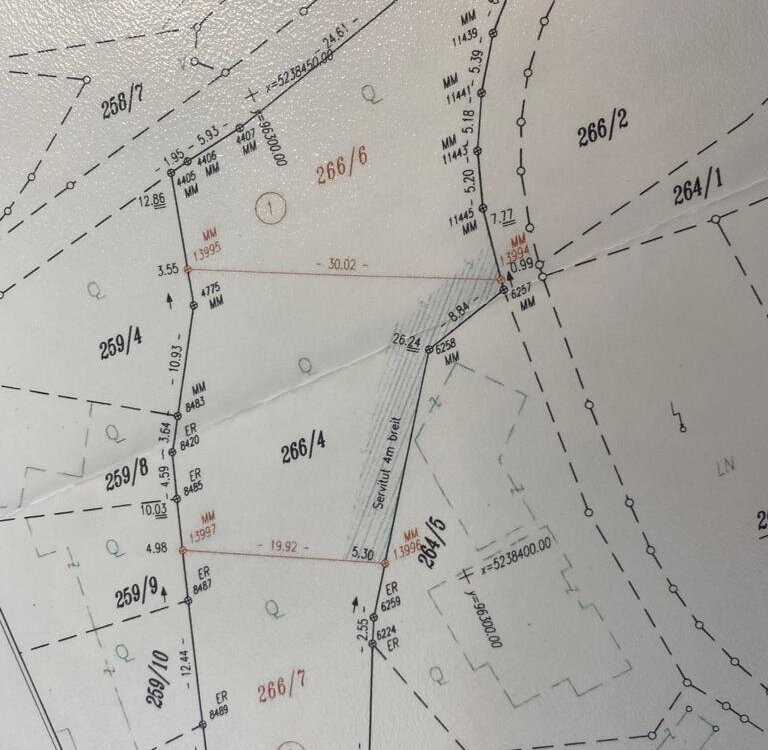 Das Grundstück 266/6 hat laut Grundbuch eine Fläche von ca. 645 m².