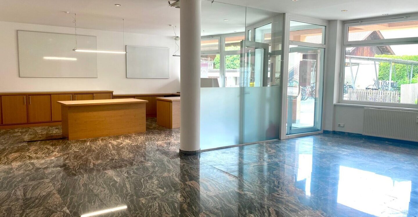 Die große Fensterfront bringt nicht nur viel Licht in dieses Objekt, es eignet sich auch hervorragend als Schauraum!